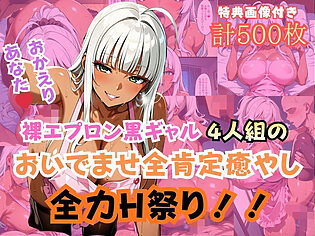 FANZA同人 裸エプロン黒ギャル4人組おいでませ全肯定癒やし全力H祭り!【gyalist】 2026.04.05 FANZA同人gyalistギャルニーソックスビッチ成人向け搾乳男性向け癒し脚裸エプロン褐色・日焼け誘い受け黒ギャル